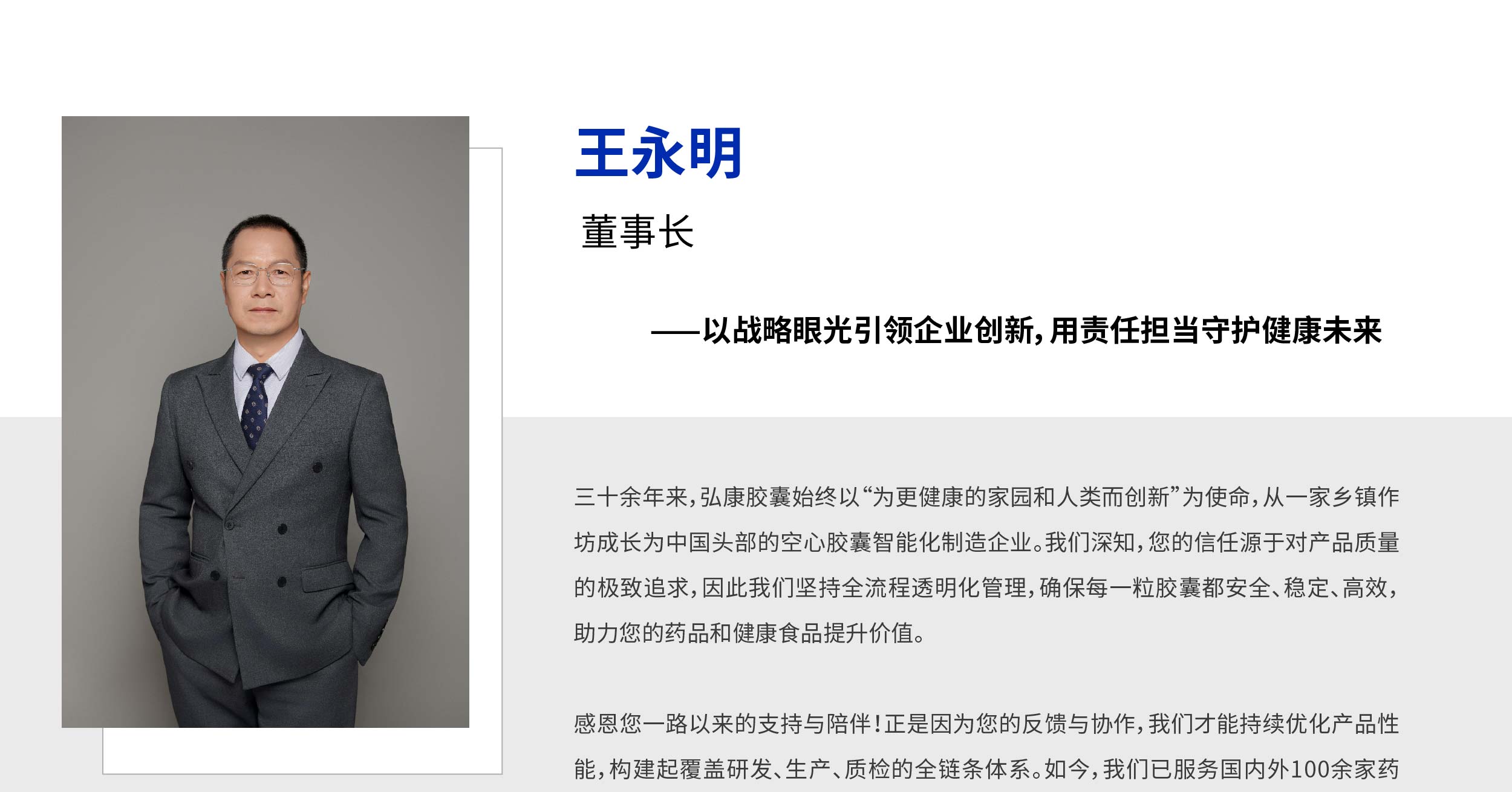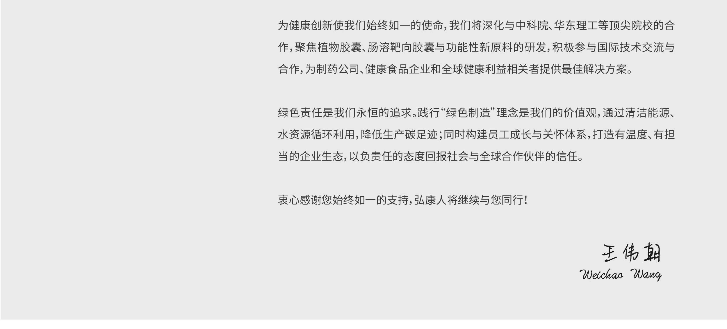 三十余年来,弘康胶囊始终以“为更健康的家园和人类而创新”为使命,从一家乡镇作坊成长为中国头部的空心胶囊智能化制造企业。我们深知,您的信任源于对产品质量的极致追求,因此我们坚持全流程透明化管理,确保每一粒胶囊都安全、稳定、高效,助力您的药品和健康食品提升价值。